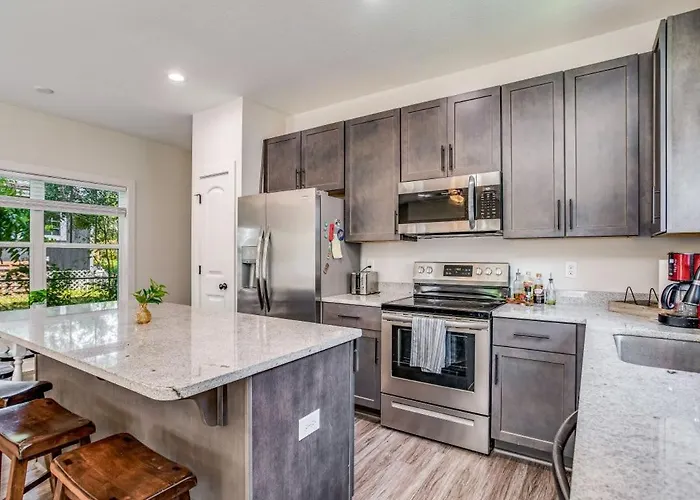 Küche zusammen mit einer Mikrowelle, einer Kaffee-/Teemaschine und einem Kühlschrank werden in der Villa in Pensacola angeboten. Gäste können im Restaurant chizuko lecker speisen, das etwa 7 Minuten zu Fuß von dieser Unterkunft entfernt liegt. Von der Unterkunft sind es 15 Minuten mit dem Auto zum Flughafen Pensacola International.